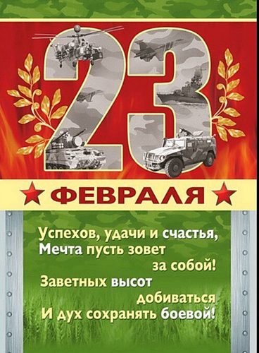| Поздравляем наших мужчин с праздником, с днём Защитника, с 23 февраля! Желаем всем мира, здоровья, крепкого тыла, благополучия, достатка, успехов, любви, понимания, счастья!